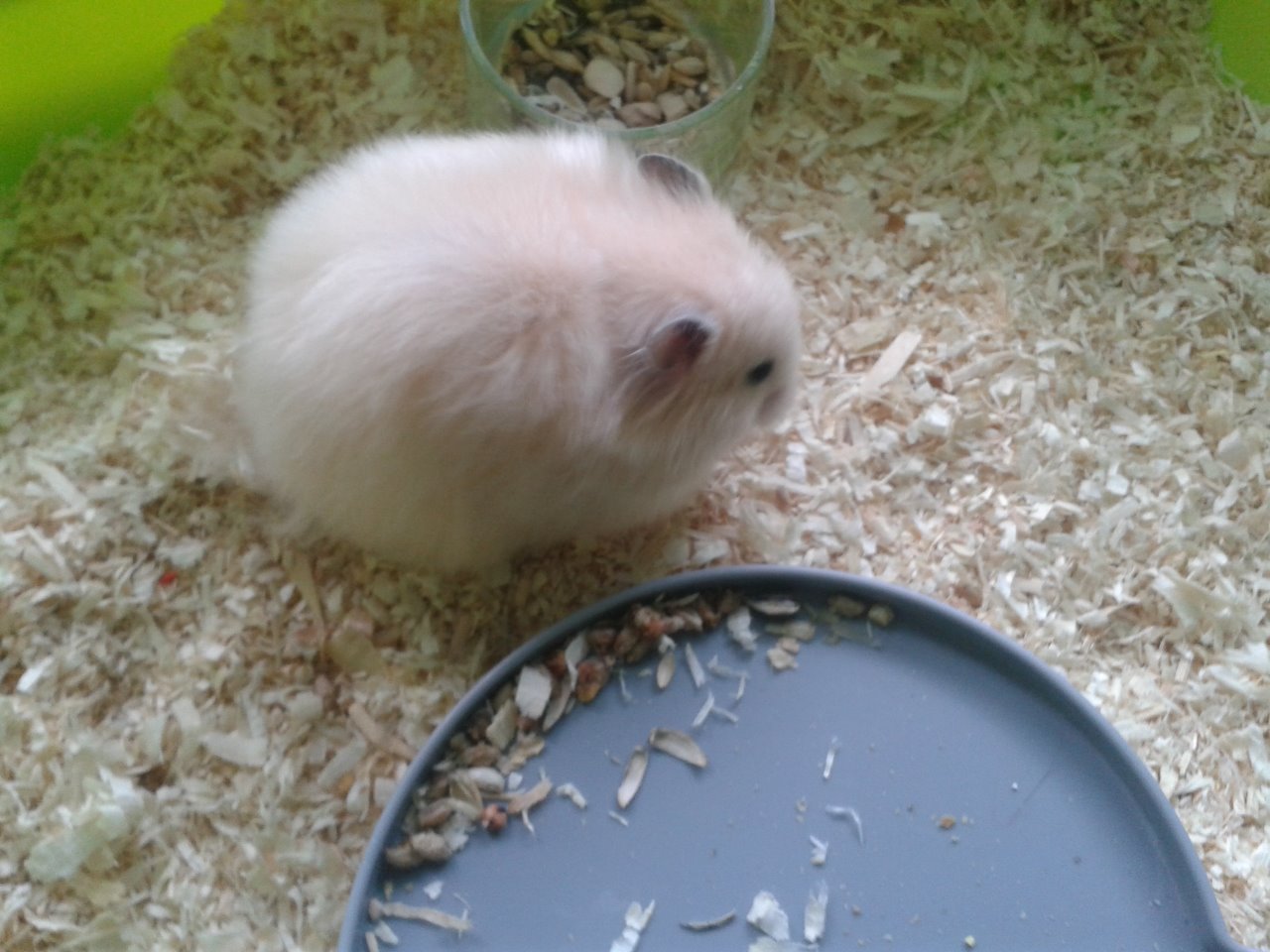 Poznámka : Túto farbu som hľadala dlho a nikde som ju nevedela násť.... :) A keď som ju našla, musela som dlho predsviečať mamu, aby mi ju dovolila. A teraz ani jedna neľutujeme, je kľudná na rukách, drží a nechá sa hladkať, je nekonflikná aj k iným škrečkom. Vžky keď idem do kuchyne tak ako prvá vylezie hore na klietku a pozoruje čo robím, je skoro ako Deminka... :) Dúfam, že bude dobrá a starostlivá mama :)
